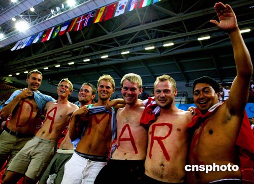 當(dāng)?shù)貢r間8月26日晚,丹麥女子手球隊以32比28戰(zhàn)勝中國隊進(jìn)入四強,丹麥球迷以獨特的方式慶祝這一勝利。中新社記者:王瑤