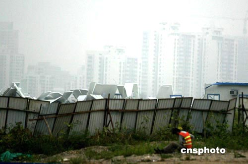 圖文:北京奧運(yùn)工地3幢臨時(shí)設(shè)施被旋風(fēng)摧毀致43傷