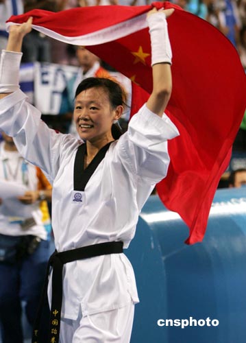 晚上七點三十分,第一次參加奧運會的北京跆拳道選手羅微不畏強手,以八比六挫敗東道主選手伊·米斯塔基杜,繼陳中在悉尼奪冠后為中國跆拳道隊贏得了第二枚寶貴的奧運金牌。