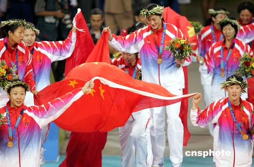 中國女排獲得雅典奧運金牌再創輝煌。中新社記者:毛建軍