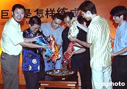 九月一日,大陸最具競爭力的線上游戲公司之一“北京橘子”在北京推出國內首款永久免費的經營類網絡游戲《巨商》,作家陸新的新作《巨商是怎樣練成的》同步上市,與會嘉賓用一捧捧錢幣掉落在聚寶盆的方式共同慶祝。游戲攜手圖書,獨特的合作模式和體驗模式成為國內圖書市場的新創舉。作者:李剛