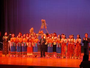 越南藝術(shù)團的演員舞臺經(jīng)驗都十分豐富,他們曾多次代表越南赴法國、美國、日本、印度、泰國、伊拉克等國演出。昨日的演出中,他們也給中國觀眾帶來了富有越南民族特色的精彩表演。民族器樂演奏家黃春平用一根琴弦奏出了豐富的音調(diào),而男高音何孟鐘和阮文俊的歌聲引來在場觀眾的陣陣掌聲,其中阮文俊用漢語演唱的《我愛你中國》贏得了中國觀眾的齊聲喝彩。舞蹈演出是昨晚的重頭戲,參加此次演出的舞蹈演員大多有在歐洲學(xué)習(xí)的經(jīng)歷,在表演的民族舞蹈中也巧妙融合了西方舞蹈動作。