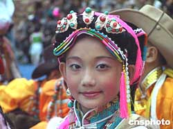 中國四川丹巴嘉絨藏族風(fēng)情節(jié)近日隆重舉行。在丹巴縣風(fēng)情節(jié)上來自聞名遐邇的“美人谷”的“美少女”。作者:張華