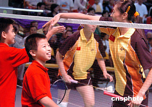 掀起一陣“追國寶風”的國家奧運金牌選手們,今日在訪港行程最后一天,繼續與全港市民近距離接觸,為市民帶來精彩的示范表演。下午,在灣仔伊利沙伯體育館,數千市民以熱情回饋一眾羽毛球及乒乓球金牌得主,為他們的訪港之行留下難忘的回憶。