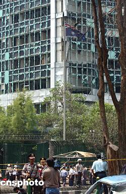 澳大利亞駐印尼大使館和爆炸現場附近300米內的高層建筑都受到嚴重破壞,玻璃幾乎全被震碎,附近的多輛汽車也被毀。澳使館大門被炸出了一個大洞,大門外的圍欄也被炸毀。