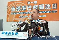 第一屆全球淋巴瘤關注日新聞發布會9月14日在香港大學醫學院大樓舉行,香港大學醫學院血液及腫瘤科主管梁憲孫教授表示,本港在91至01年十年期間,淋巴瘤個案增加超過兩成,達到640宗。港大醫學院及血癌基金,將15日訂為全球淋巴瘤關注日。作者:鄧慶樂