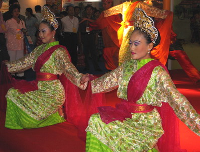 古銅色的皮膚,艷麗的民族服飾,激揚的音樂,來自馬來西亞的姑娘小伙子們跳起了具有濃郁馬來西亞特色的舞蹈。乍一看,還以為是東南亞民族風情表演。仔細一打量才發現是馬六甲州情況說明及經貿旅游洽談會專場活動。