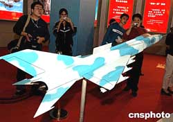 在3300多平方米的展廳里,大量珍貴圖片和模型,分七大部分精彩再現了建國55年來我國國防科技的巨大進步和輝煌業績,55年來我國自行研制的諸如軍艦、飛機等尖端武器,也在展覽上以實物模型的方式露出“真容”,展出的飛豹戰機模型引起很多觀眾的興趣。