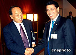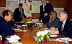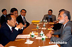 當(dāng)?shù)貢r(shí)間九月二十八日,正在紐約聯(lián)合國總部出席第五十九屆聯(lián)大的中國外長李肇星(左),會(huì)見了聯(lián)合國名人小組成員。由聯(lián)合國秘書長安南提議建立的“威脅、挑戰(zhàn)與變革”高級別名人小組,專門負(fù)責(zé)研究聯(lián)合國的改革問題,并將于年底提出報(bào)告,供會(huì)員國審議。作者:趙海燕