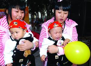 9時30分,開幕式演出開始,主持人是一對剛剛大學畢業的雙胞胎。他倆身著同樣的服裝在臺上一唱一和,連聲音都一模一樣。隨后,25對雙胞胎輪番出場,歌舞、相聲、小品、魔術、武術,一口氣演了倆小時。其中,兩對特地從長春趕來表演雜技的雙胞胎夫妻,又是姐妹,又是兄弟,又是夫妻,把臺下上千名雙胞胎觀眾徹底搞糊涂了。
