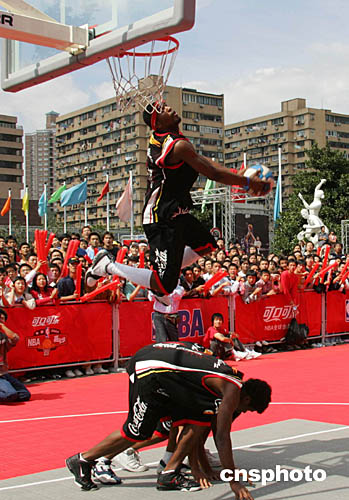 一批來自法國的灌籃高手在上海“二零零四可口可樂NBA嘉年華”開幕式上表演,吸引上海籃球迷觀賞。