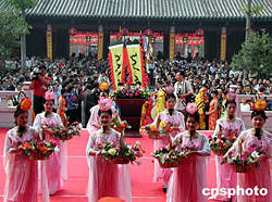 10月14日上午,第九屆中國孔廟保護協(xié)會年會、孔子文化學(xué)術(shù)研討會暨廣東德慶旅游文化節(jié)開幕。來自內(nèi)地三十多個省市及香港、越南等地的孔廟代表、研究孔子文化的專家學(xué)者、孔氏宗親一千三百多人云集廣東德慶孔廟。作者:黃耀輝