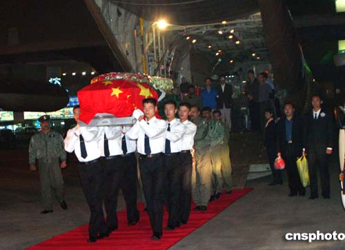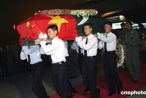 中新社濟(jì)南十月十六日電 (記者 王魯平 胡洪林)在巴基斯坦人質(zhì)綁架事件中遇難的中國(guó)工程師王鵬遺體,今晚八點(diǎn)四十五分由巴基斯坦的專機(jī)運(yùn)回,抵達(dá)山東省濟(jì)南國(guó)際機(jī)場(chǎng),中國(guó)外交部、商務(wù)部、山東省人民政府等有關(guān)部門的官員在濟(jì)南機(jī)場(chǎng)舉行莊嚴(yán)的靈柩迎接儀式。