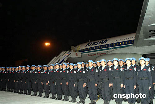 ·中國維和警察防暴隊離京赴海地 其中有13名女警 (2004-10-17)