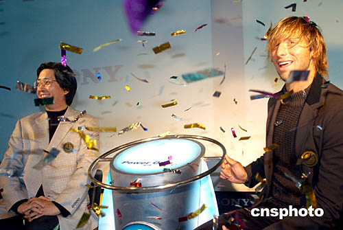圖為索普(左)與索尼中國副總裁遲澤準亮相現場氣氛熱烈。