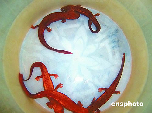 圖:梅州發現瀕危兩棲爬行動物“中國小鯢”