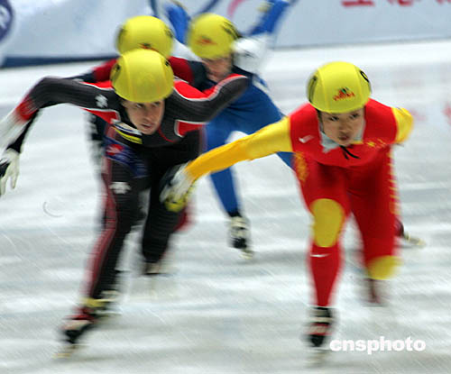 今天的比賽可謂競爭激烈、冷門迭出。世界杯第一站五百米冠軍得主、中國小將王濛由于冰刀出現問題而犯規被取消成績。韓國隊在這個項目上沒有一人進入半決賽。中國隊付天余和朱米樂表現出色,在小組賽和半決賽中過關斬將,雙雙闖入決賽圈。冠軍爭奪戰中,兩位中國姑娘默契配合,付天余沖在第一位拼速度,朱米樂緊隨其后并利用滑行線路的變化干擾對手,將優勢一直保持到終點,加拿大的維森特獲得銅牌。