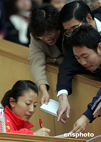 10月30日,2004/2005波司登國際滑聯短道速滑世界杯在北京首都體育館繼續舉行,為中國奪得首枚冬奧會金牌的楊揚亮相賽場,受到眾多冰上運動愛好者的追捧。中新社記者:武仲林