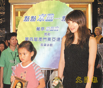 此外,郭晶晶前晚出席第四屆澳門(mén)東亞運(yùn)動(dòng)會(huì)“開(kāi)元”之火采集及傳遞儀式及文藝晚會(huì)時(shí),接受了東亞運(yùn)組委會(huì)頒贈(zèng)的“東亞運(yùn)志愿工作者大使”聘書(shū),成為澳門(mén)東亞運(yùn)動(dòng)會(huì)的一分子。