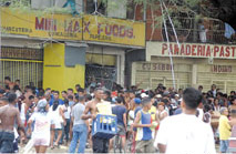 中午11時(shí),又有一群不明真相的暴徒來(lái)到一家名為“MINIMAXFOODS”的吳姓華人超市門前,用利器挖了墻壁一個(gè)大洞,并用利器破門而入。正當(dāng)?shù)群騼膳缘娜巳悍溆慷脒M(jìn)行哄搶之際,剛巧軍警人員及時(shí)趕到,驅(qū)散了人群。當(dāng)天下午1時(shí)許,這家商店再度被洗劫一空。