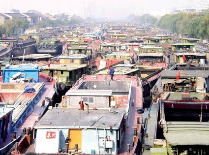 在江蘇常州東郊三號(hào)橋至九號(hào)橋的河段,短短3公里長(zhǎng)的運(yùn)河,竟來來往往堵了600多條船。岸邊一位姓王的船員說,他們的船是去無錫送石材的,在這已經(jīng)堵了整整兩天,已經(jīng)延誤工期了。盡管目前船上的水和生活用品還勉強(qiáng)可以維持,但隨著后面的船源源不斷地駛來,滯留的船越聚越多,還不知道要等多久呢!