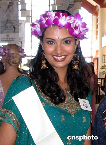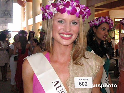 前來三亞參加第54屆世界小姐總決賽的澳大利亞小姐楚楚動人,落落大方。