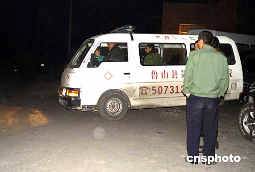 這是當晚停在煤礦瓦斯爆炸現場隨時待命的急救車輛。