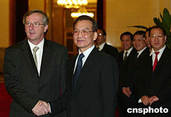 中國國務院總理溫家寶十一月十二日在北京會見盧森堡首相容克。中新社記者:滿會喬