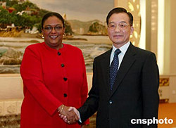 圖:溫家寶會(huì)見巴巴多斯副總理米亞·莫特利