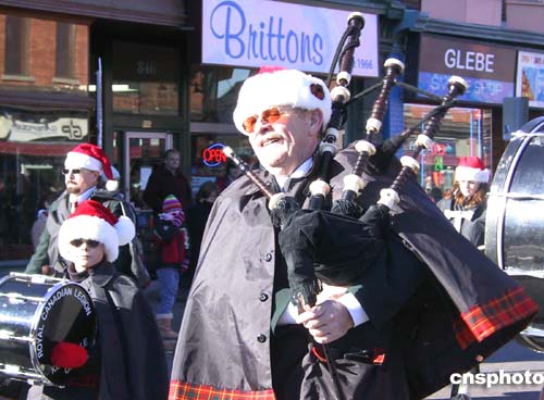 當?shù)貢r間十一月十三日,加拿大渥太華率先敲響了北美慶祝圣誕的第一聲鐘響。數(shù)萬名市民冒著零度以下的寒冷,觀看圣誕游行。