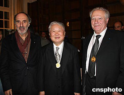 11月22日晚,中國著名建筑學家吳良鏞教授在巴黎出席法國建筑科學院院士就位儀式。吳良鏞教授是在1999年獲得該院外籍院士稱號的,事隔5年,他終于有機會專程赴巴黎舉行就位儀式。擁有300名院士的法國建筑科學院有60名外籍院士,吳教授是3名中國籍院士之一。圖為吳良鏞院士和法國建筑科學院院長(右)和中國國家大劇院的設計者、法國建筑師安德魯在就位儀式上合影。作者:鐘誠