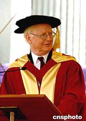一九九六年諾貝爾經濟學獎獲得者的J James A Mirrlees爵士,12月9日獲香港中文大學社會科學博士。作者:宋吉河