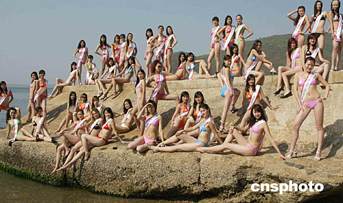 來自中國各地的六十二位參加第十七屆世界模特小姐大賽中國賽區總決賽的選手,日前來到深圳風景秀麗的海邊,身穿泳裝展示風采。中新社記者:錢興強