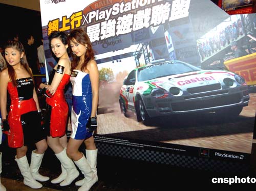 2004年亞洲游戲展17日在香港會展中心開幕﹐本次展覽集中了市場上最先進的游戲及相關產品﹐網上賽車游戲品種繁多。作者:趙振清
