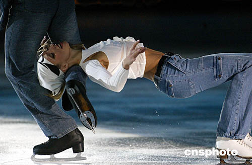 二零零四年十二月十九日,世界花樣滑冰大獎(jiǎng)賽總決賽在北京首都體育館落幕,在各個(gè)項(xiàng)目中取得前五名的各國(guó)選手再次登臺(tái)表演,為北京觀眾奉上一臺(tái)完美的視覺盛宴。圖為獲得冰舞冠軍的俄羅斯選手納烏卡/考斯特麥洛夫在表演。中新社記者:武仲林