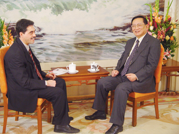 國務委員唐家璇今接受卡塔爾半島電視臺記者采訪