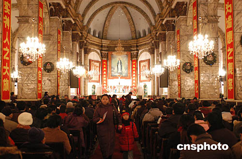 北京眾多天主教信眾來到天主教宣武門教堂參加圣誕彌撒。中新社記者:鄒憲