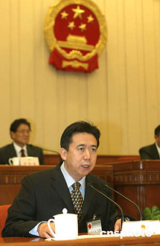 受委員長(zhǎng)會(huì)議委托,全國(guó)人大常委會(huì)法制工作委員會(huì)主任胡康生就委員長(zhǎng)會(huì)議提請(qǐng)審議的反分裂國(guó)家法草案作了說明。
