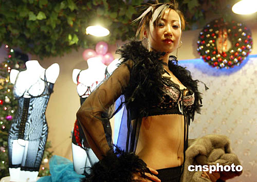 十二月二十五日圣誕節,在北京寶兒金領生活館,一場別開生面的臺灣薇尼喬二零零五年新款內衣秀為許多白領女性增添了生活樂趣。中新社記者:任海霞