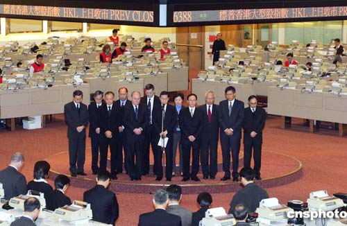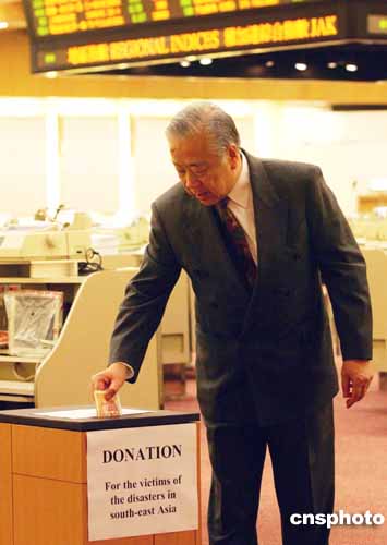 香港聯合交易所在早上開市前為南亞大地震和海嘯災難中的死者默哀1分鐘,并在大堂內設置捐款箱,籌款賑災。作者:洪少葵