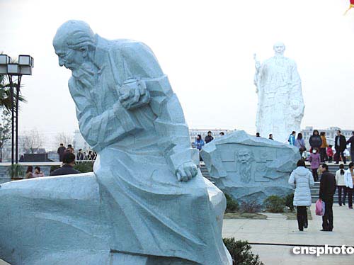 湘潭市民瞻仰齊白石雕像緬懷一代宗師