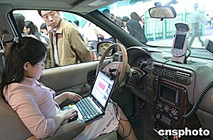 五月中旬,在北京科技周展覽會上,一種可在移動的汽車上完成全套辦公業務的“車載辦公室”向觀眾亮相。“車載辦公室”有無線網絡、衛星導航、傳真打印等各種配置。中新社記者:史利