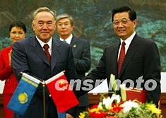 會談后,兩國元首出席了兩國政府關于成立中哈合作委員會的協定等文件的簽字儀式。
