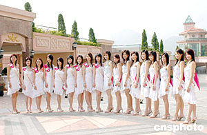 一年一度之選美盛會《2004年度香港小姐競選》,5月18日在香港破天荒假赤柱富豪海灣舉行記者會,十八位候選佳麗身穿充滿夏日青春氣息的服飾,首度會晤新聞界。作者:鄧慶樂
