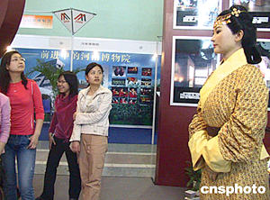 五月中旬正在北京農(nóng)展館舉辦的“博物館及相關(guān)產(chǎn)品與技術(shù)博覽會”上,湖南省博物館展出的馬王堆漢墓主人——辛追夫人的復(fù)原像吸引了眾人目光。作者:韓藝冰