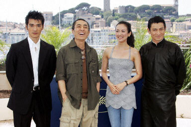 中新網5月20日電 法國戛納當地時間5月18日下午2時,報道戛納電影節的中國記者被請到馬丁內斯飯店的露天酒吧,與參展影片《十面埋伏》導演張藝謀以及主演金城武、劉德華、章子怡見面,上海《新聞晨報》的特派記者也在其間。該報今日刊出了記者對張導及三位主演的完全訪談錄,本網現將全文轉載如下: