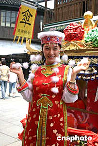 五月二十二日,參加第十六屆大賽總決賽的中國選手閻巍來到杭州古街清河坊,這位身穿清代宮廷服裝的中國名模儼然成了一名楚楚動人的“格格”。作者:張茵