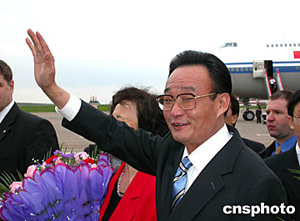 中國全國人大常委會委員長吳邦國,當地時間五月二十三日晚飛抵莫斯科,開始五天的訪問。作者:戴亞平