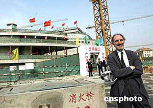 當(dāng)?shù)貢r(shí)間5月23日6時(shí)57分,法國(guó)巴黎戴高樂(lè)國(guó)際機(jī)場(chǎng)2E候機(jī)廳發(fā)生坍塌事故。目前事故中有兩名中國(guó)公民遇難。該候機(jī)樓的設(shè)計(jì)者是巴黎機(jī)場(chǎng)公司建筑設(shè)計(jì)所,原首席設(shè)計(jì)師為保羅·安德魯。他提供的中國(guó)國(guó)家大劇院的設(shè)計(jì)方案,目前正在施工中。據(jù)悉,保羅·安德魯正在趕回法國(guó)途中。圖為保羅·安德魯2003年4月25日北京國(guó)家大劇院工地。中新社記者:滿(mǎn)會(huì)喬