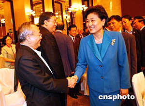 全國政協(xié)副主席、中共中央統(tǒng)戰(zhàn)部部長劉延東,5月26日在香港會見社會各界知名人士時與香港中央政策組首席顧問劉兆佳親切握手。作者:洪少葵